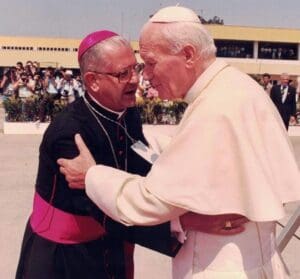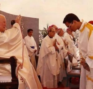 Dom Bonifácio recebendo o Santo São João Paulo II em 1991.
